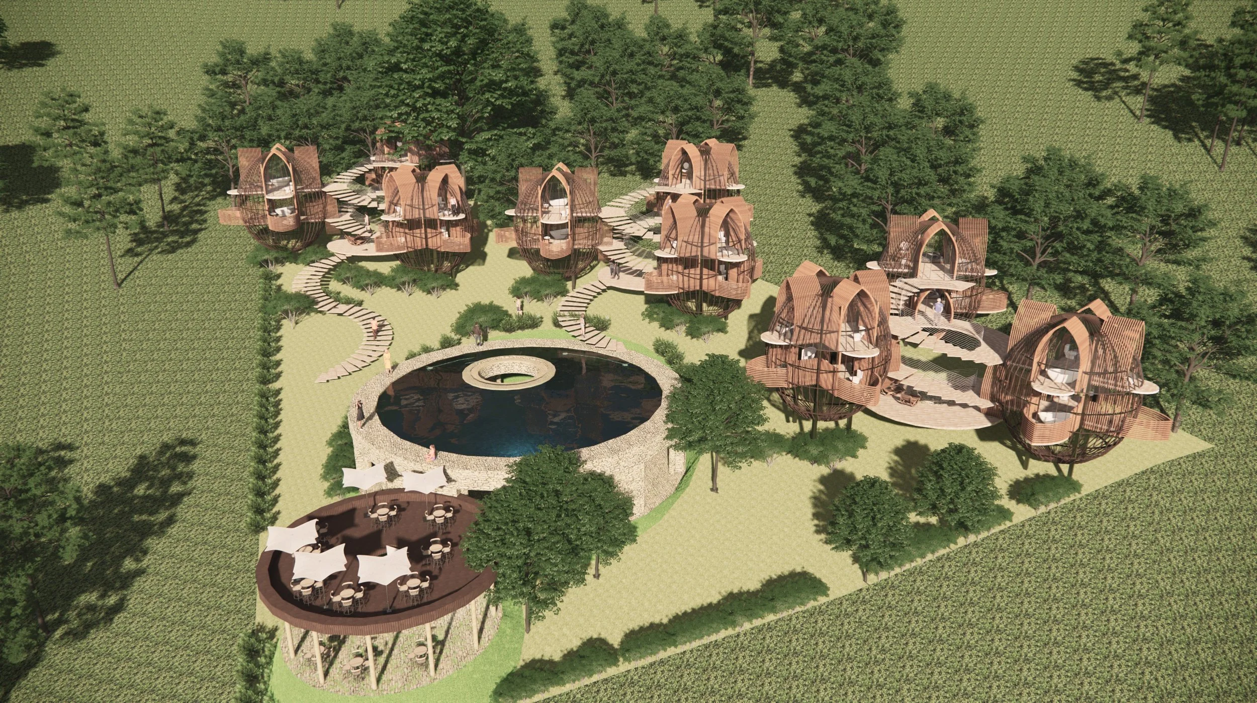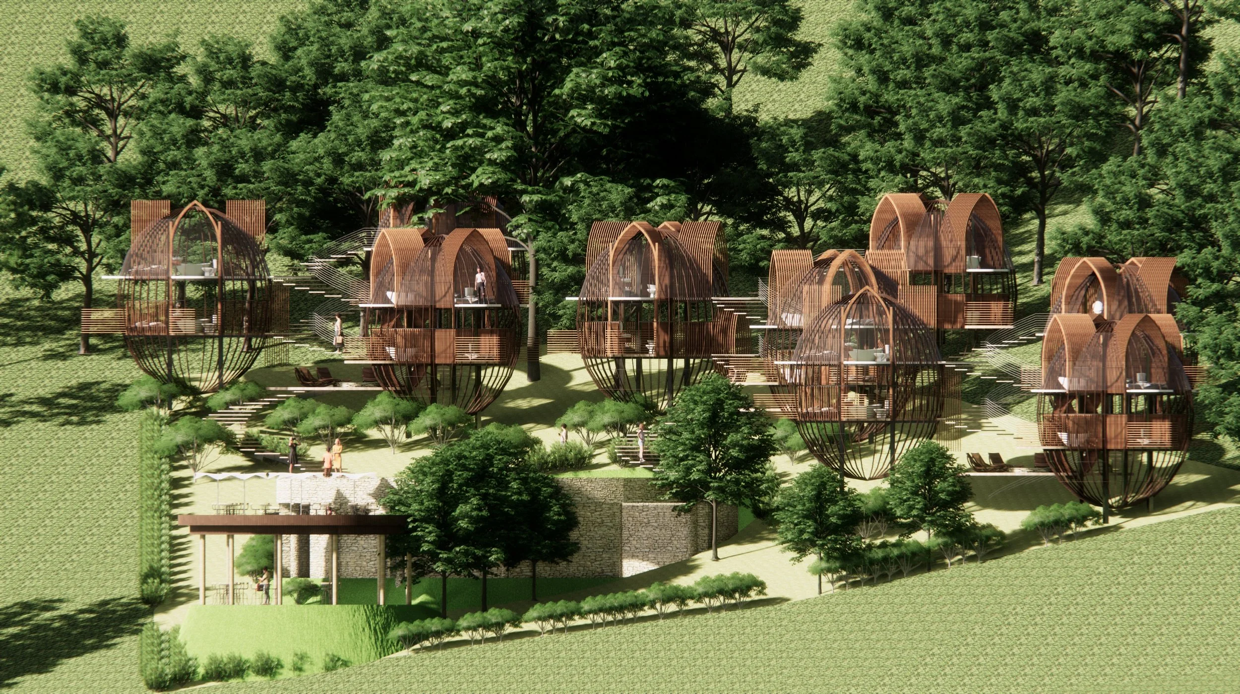 MỘT TỔ HỢP CÁC KHÔNG GIAN NGHỈ DƯỠNG GIỮA RỪNG DẠNG TỔ CHIM ĐƯỢC THIẾT KẾ VÀO NĂM 2020 TẠI MÊ LINH - LÂM HÀ